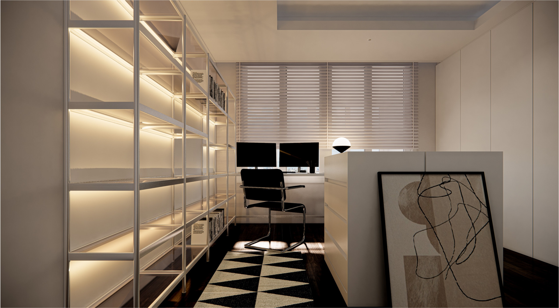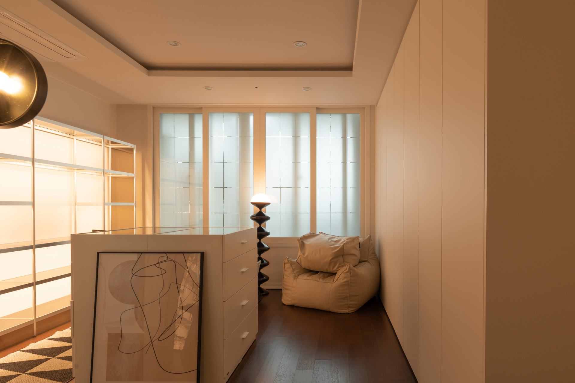 서재는 고객님께서 가장 중요하게 생각하시는 공간 중 하나였는데요! 오롯이 고객님만을 위한 공간으로, 드레스룸이자 서재의 용도를 공존 시키는 것을 목표로 하였습니다.