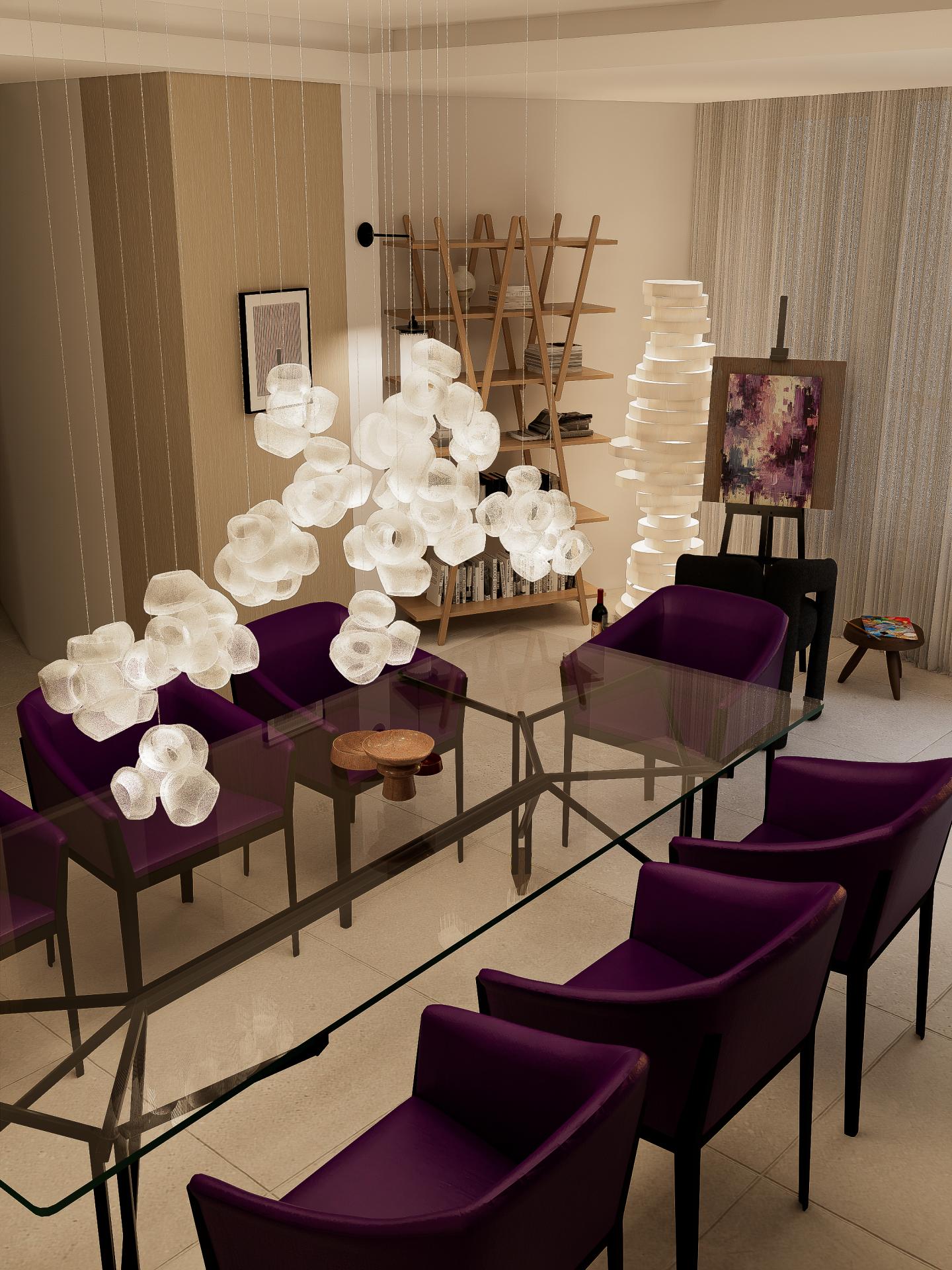 8~10인용 아이코닉한 다이닝 테이블 배치하여 지인 초대가 많은 고객님의 라이프스타일에 맞춘 디자인을 제안해 드렸습니다.