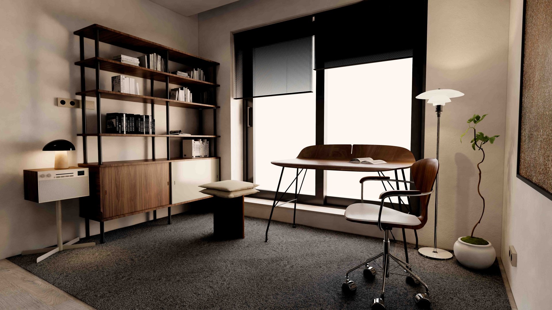 거실과 가까운 방을 서재 겸 알파룸으로 스타일링합니다. 월넛 색상의 원목 가구들을 조합하여 고급스러우면서 현대적인 감성의 스타일링을 연출합니다.