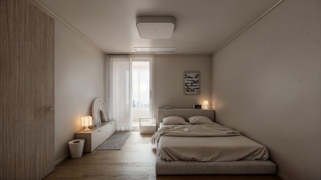 침대로 들어오는 햇빛의 양이 적어 깊은 수면에 도움을 주는 배치입니다.