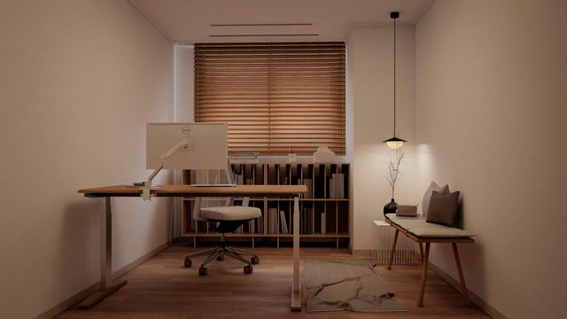 벽을 등지고 앉는 것보다는 방의 문을 볼 수 있는 위치에 책상을 배치하는 게 불안감을 줄이고 편안하게 집중할 수 있는 환경을 만들어줍니다.