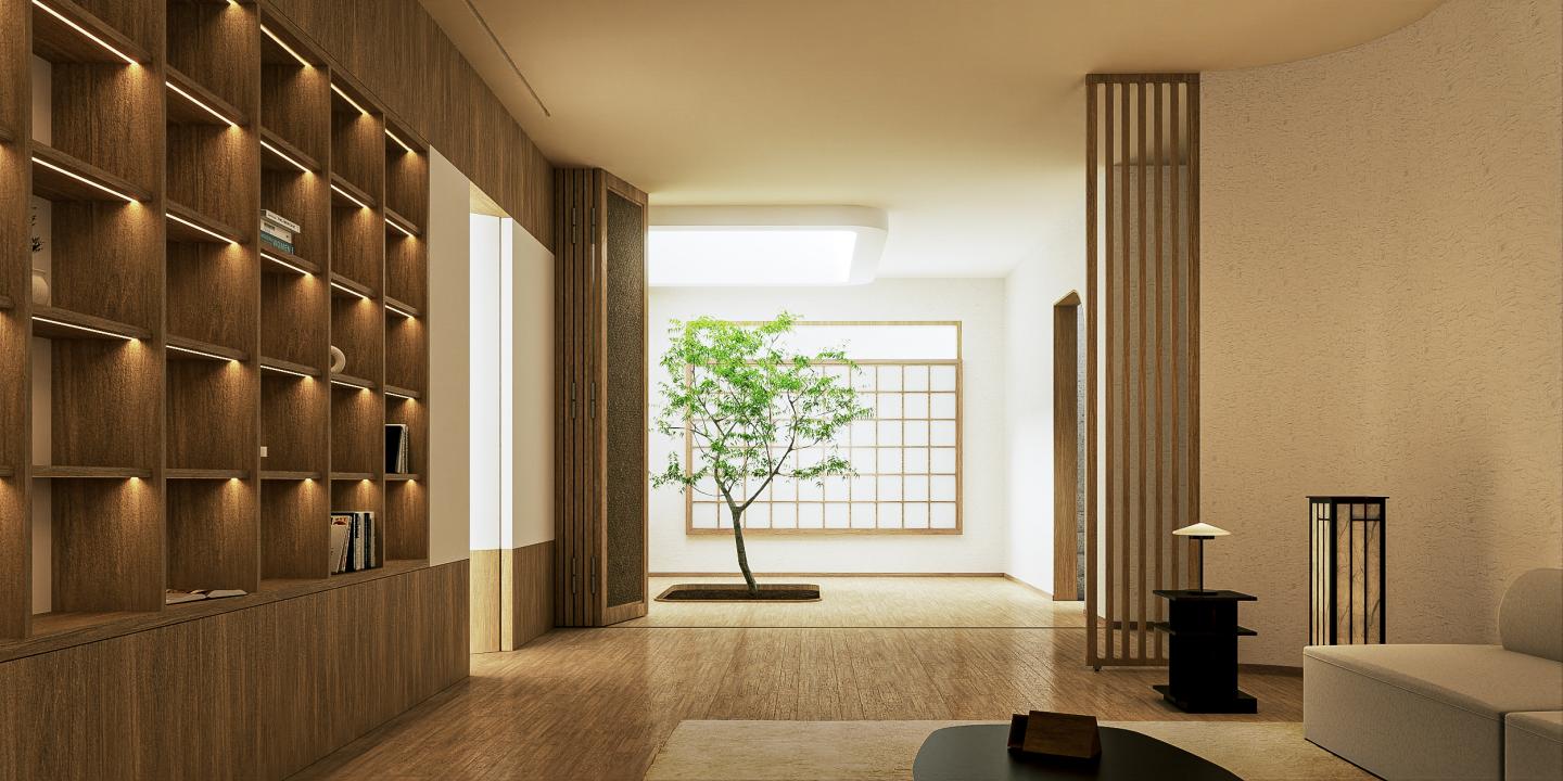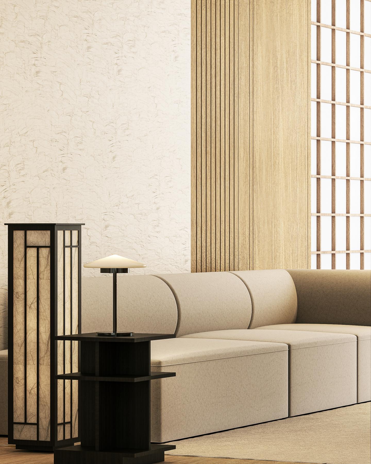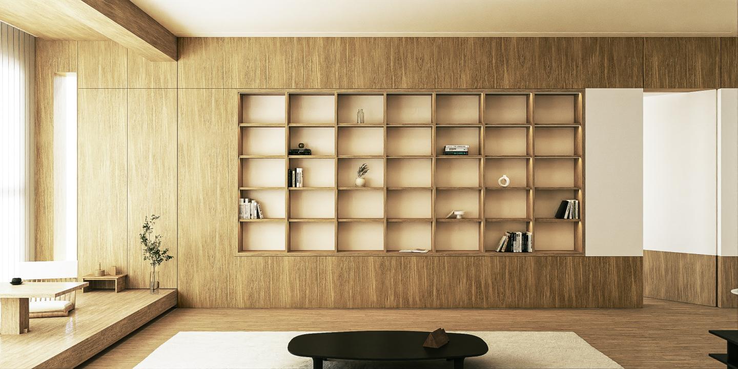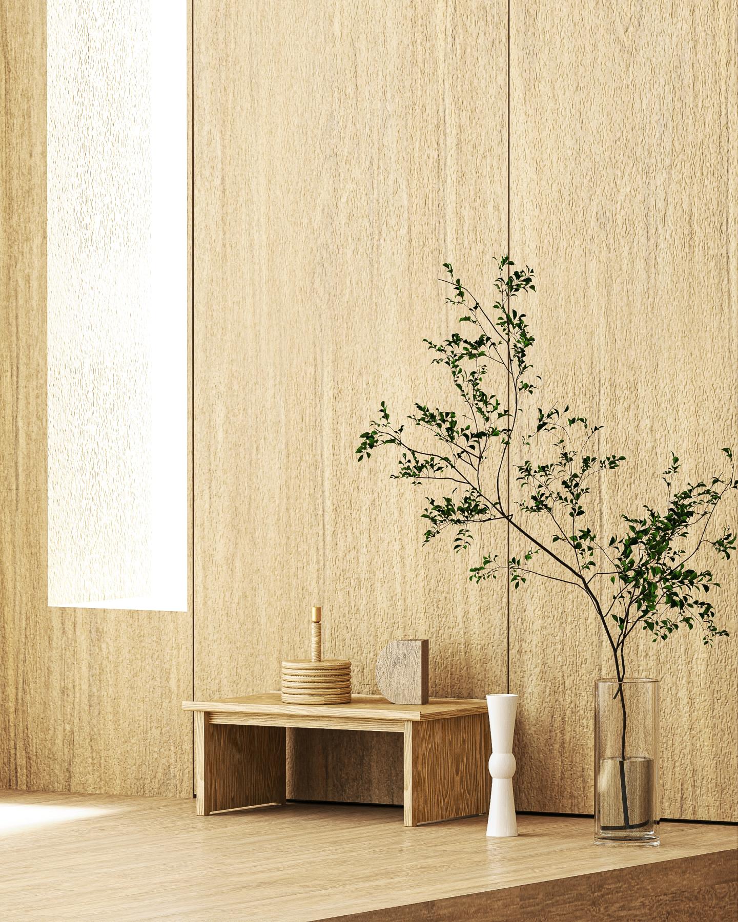 단정한 삼색 구성: 우드·베이지·블랙