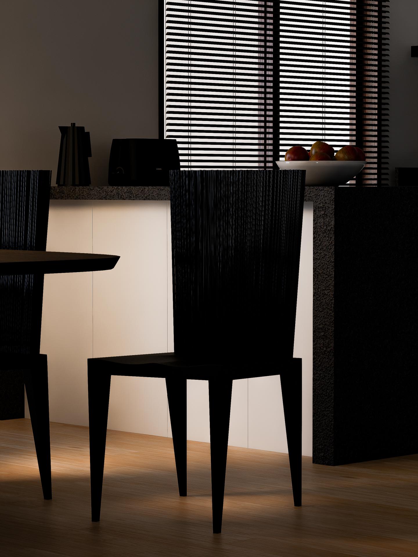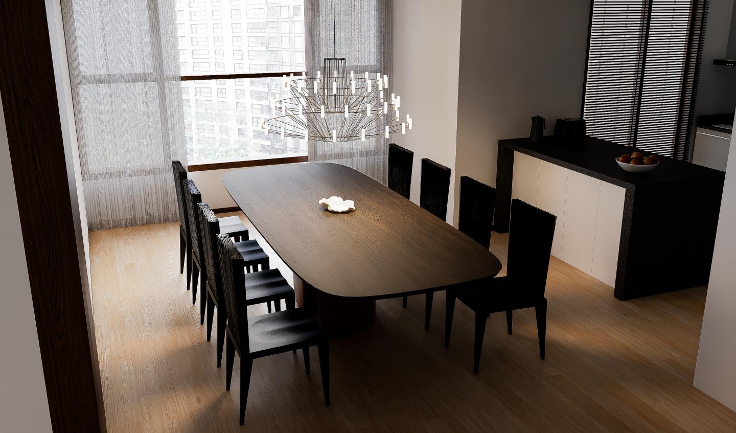 블랙 & 월넛 컬러 조합으로 중후한 분위기 연출하고 깔끔하고 군더더기 없는 식사 공간을 제안해 드렸습니다.