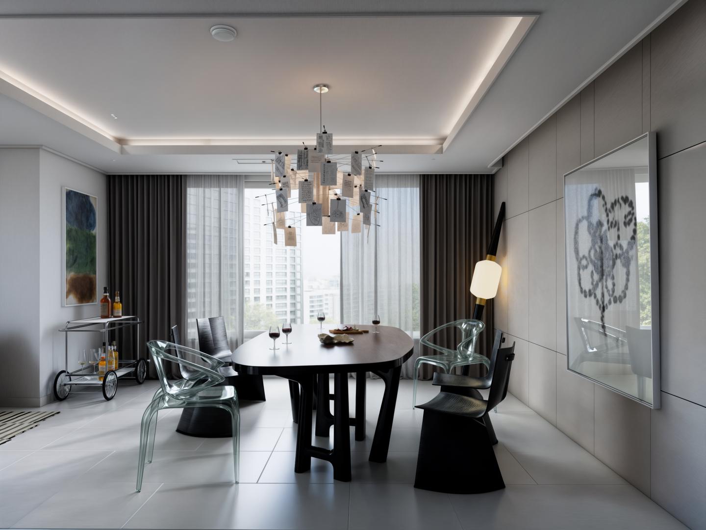 거실을 다이닝 공간으로 전환해 고객님의 니즈를 최대한 맞춰 디자인을 진행하였습니다.