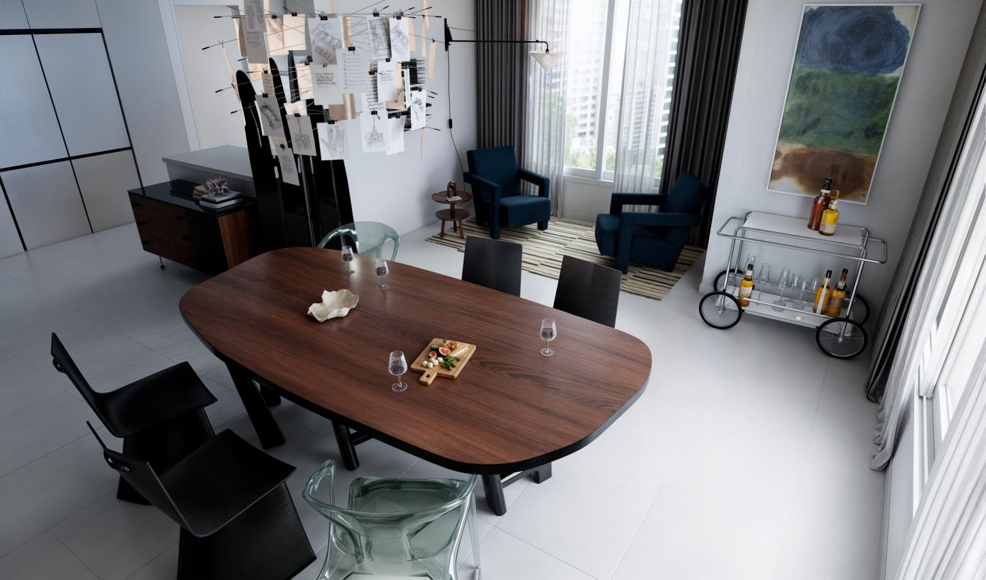 손님 초대가 잦은 고객님을 위해 8~10인이 함께 사용할 수 있는 대형 테이블을 배치해 드렸습니다.