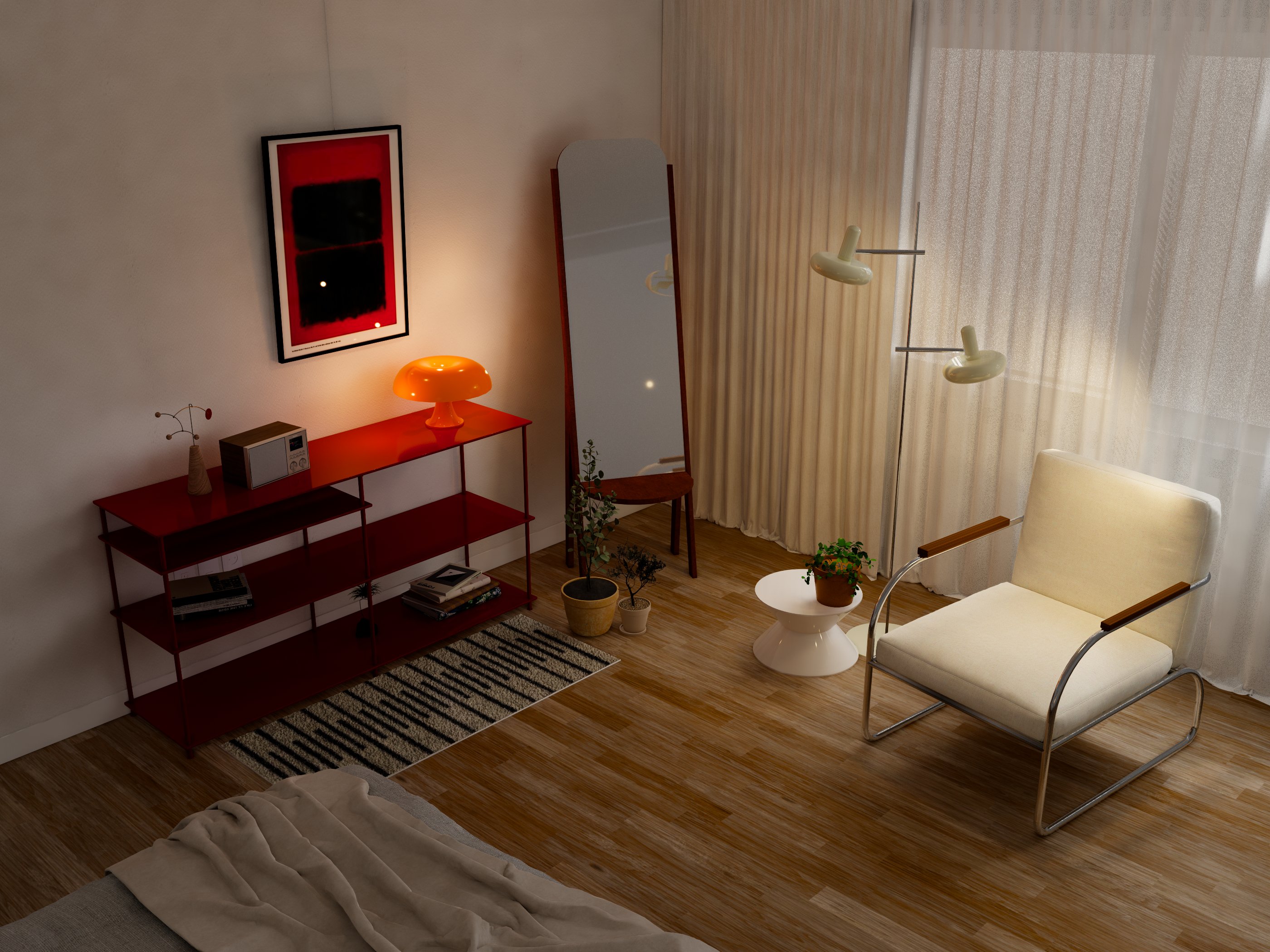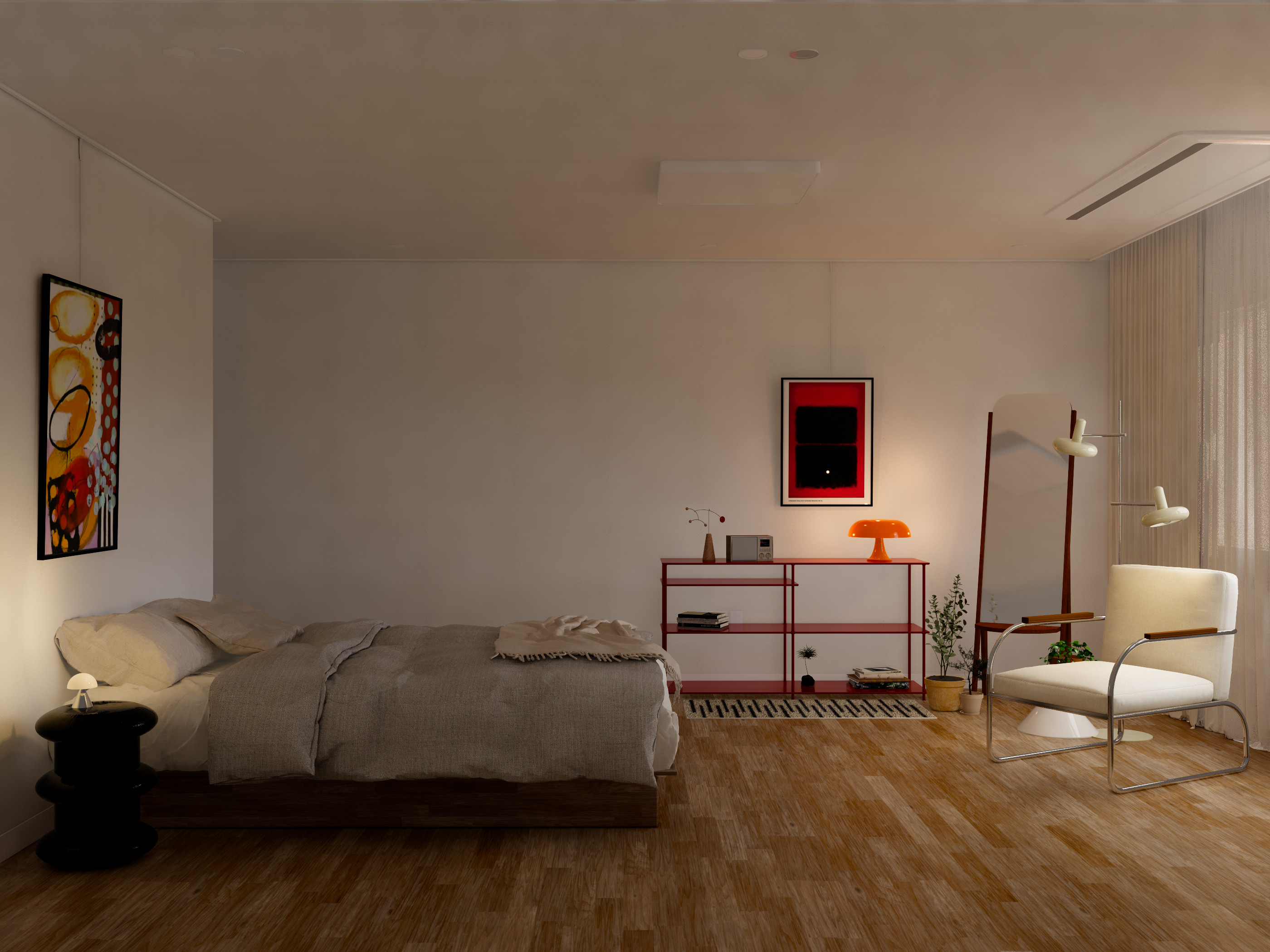 미드센추리 스타일로 되살린 침실