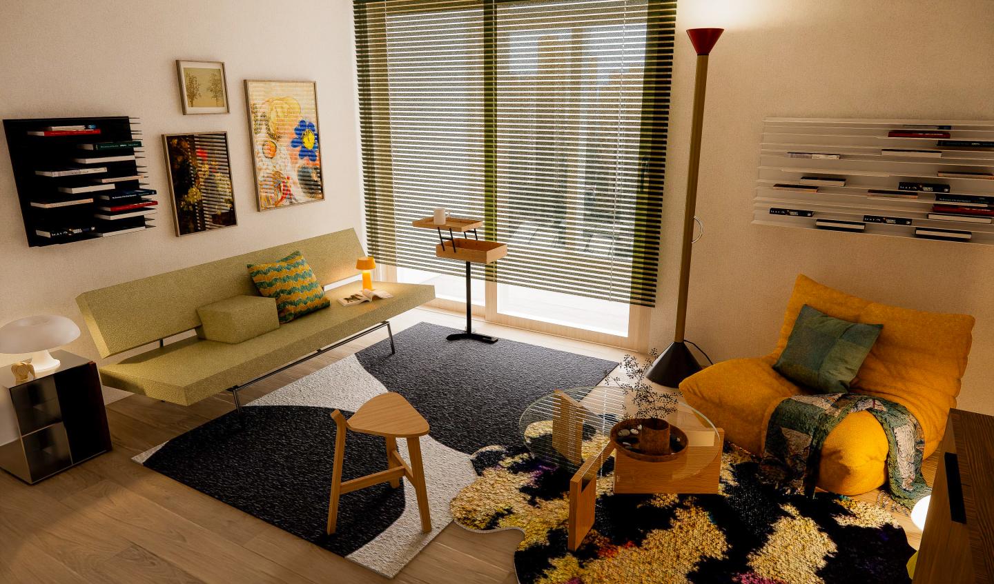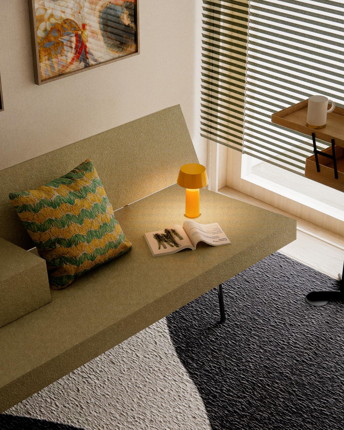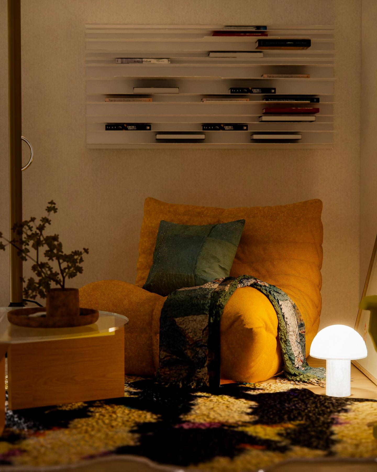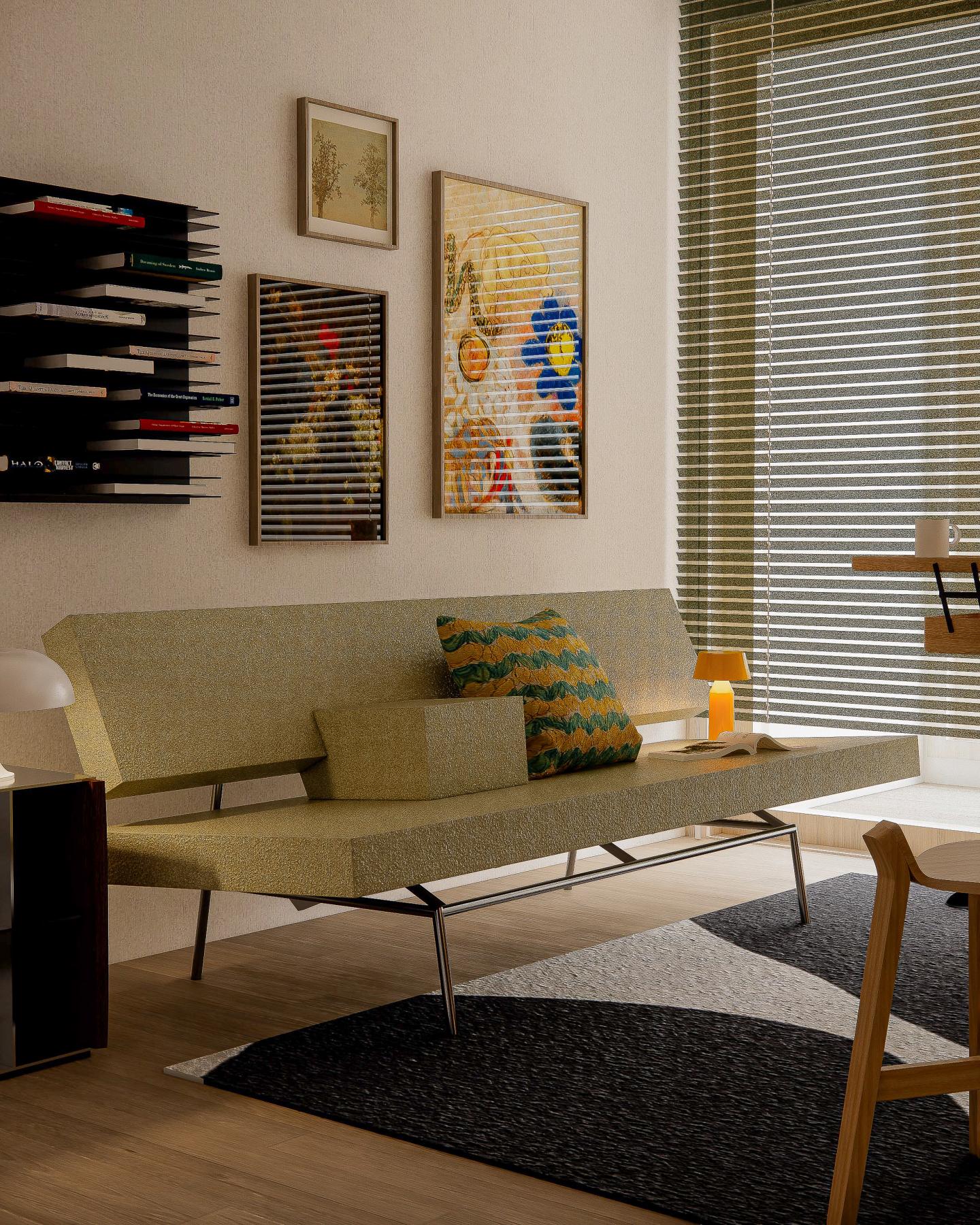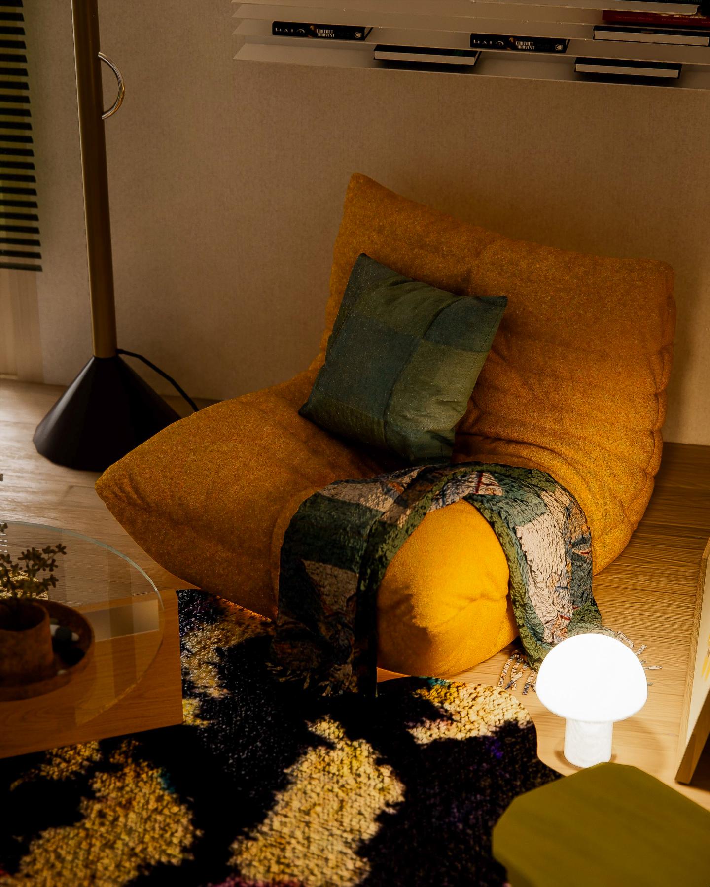 빈티지 러그와 미드센추리 소파의 황금 조합