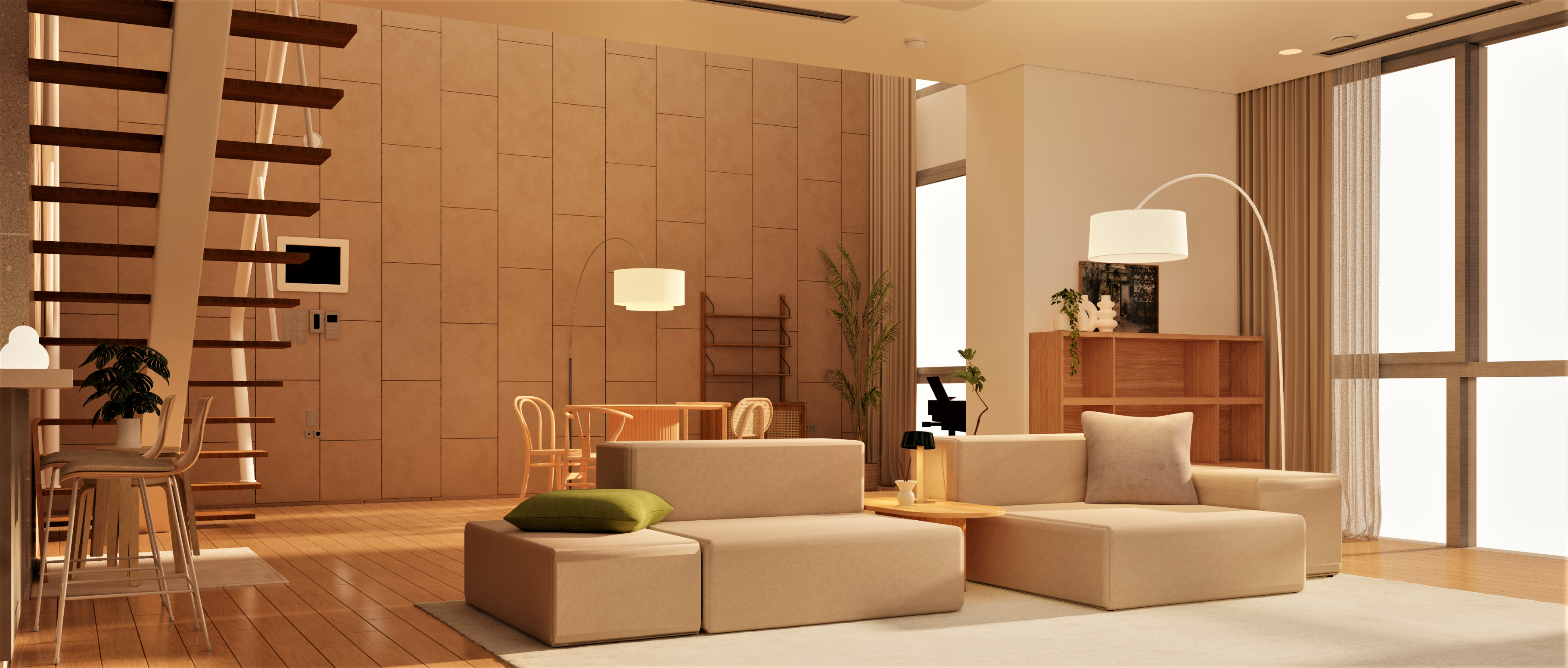 내추럴한 다이닝룸에서의 여유로운 식사