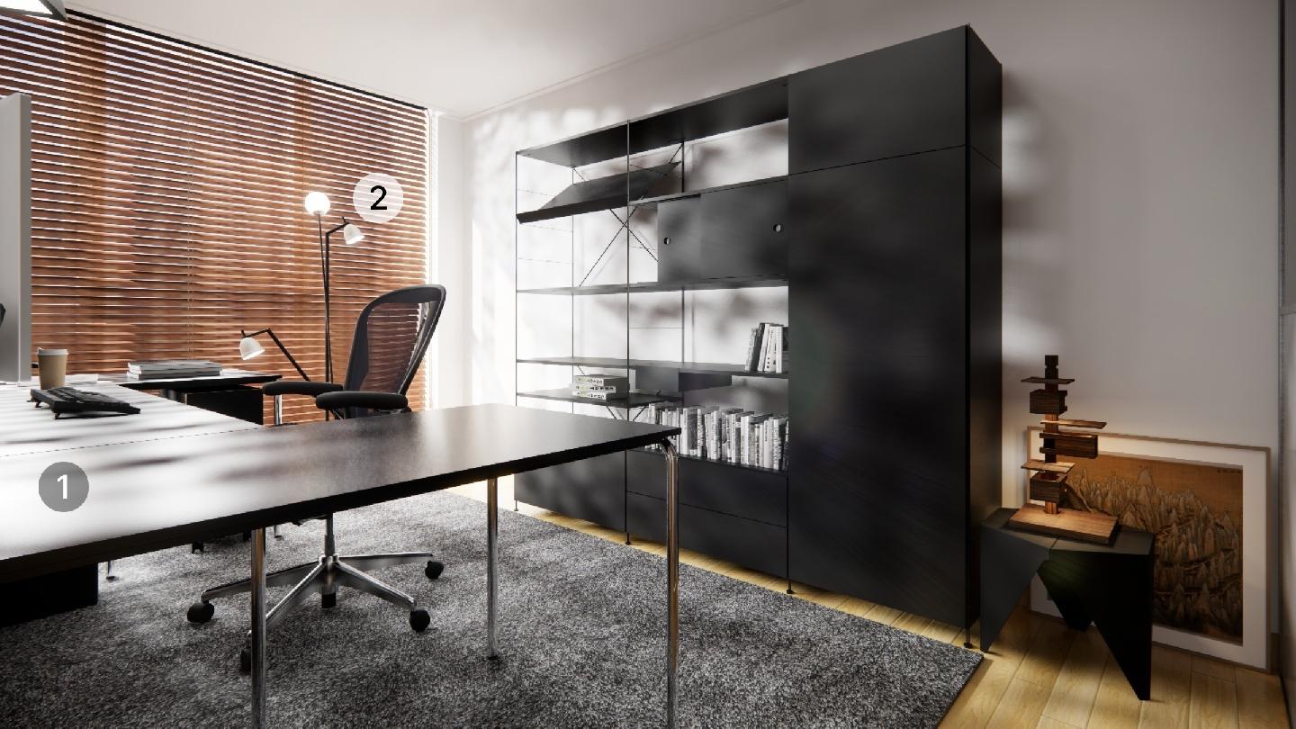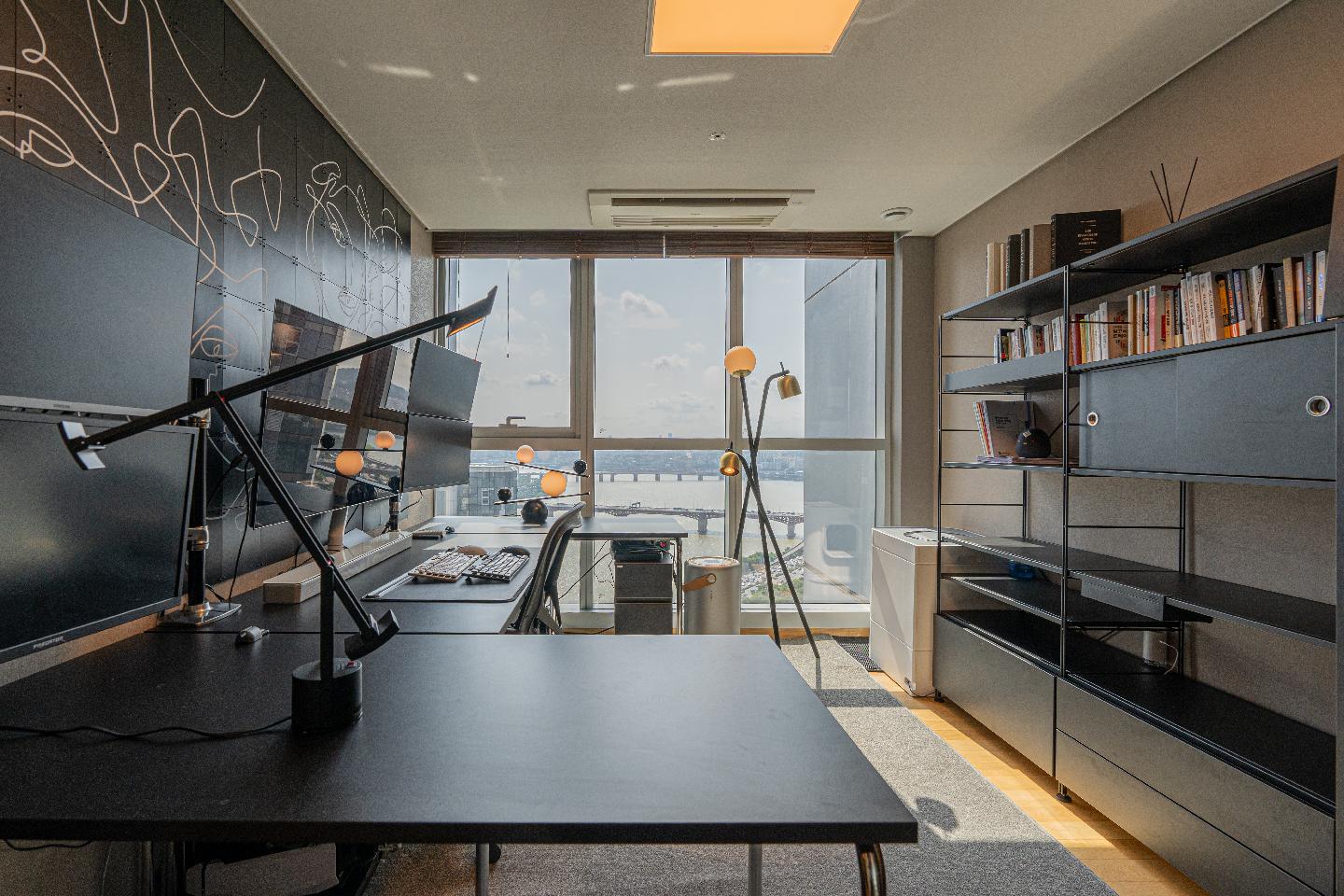 그리고 서재 공간에서는 비즈니스에 집중할 수 있는 스타일링을 요청하셨어요.