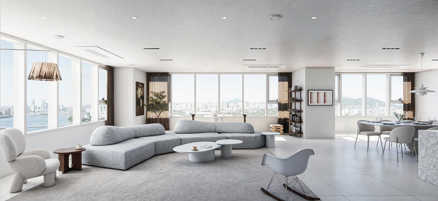 질감과 여백이 이끄는 도시형 리빙룸