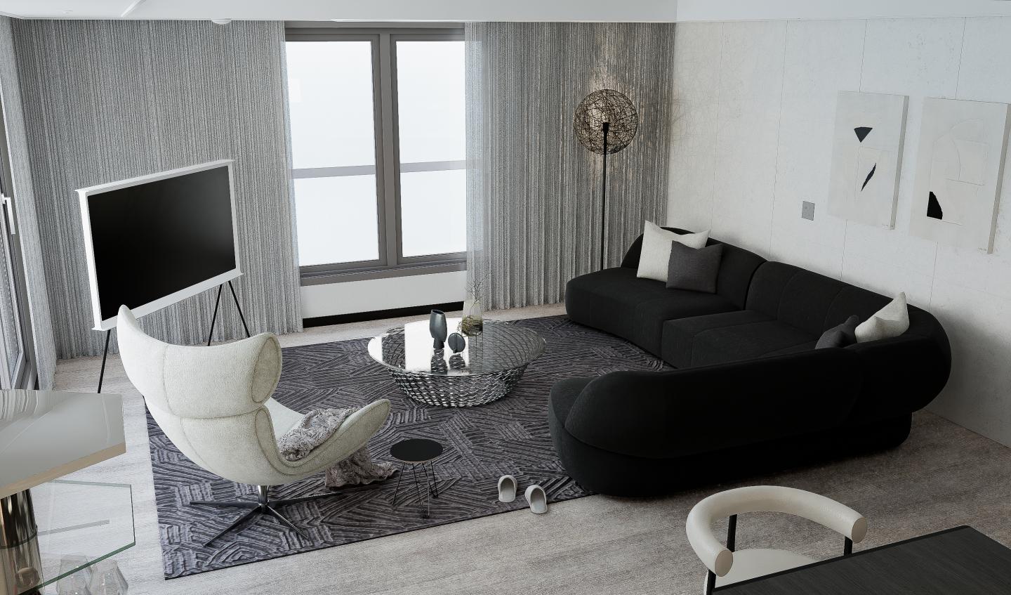 이번 컨설팅을 맡은 공간은 송도럭스오션SK뷰 183T타입 거실으로 모던 스타일로 요청하셨습니다.