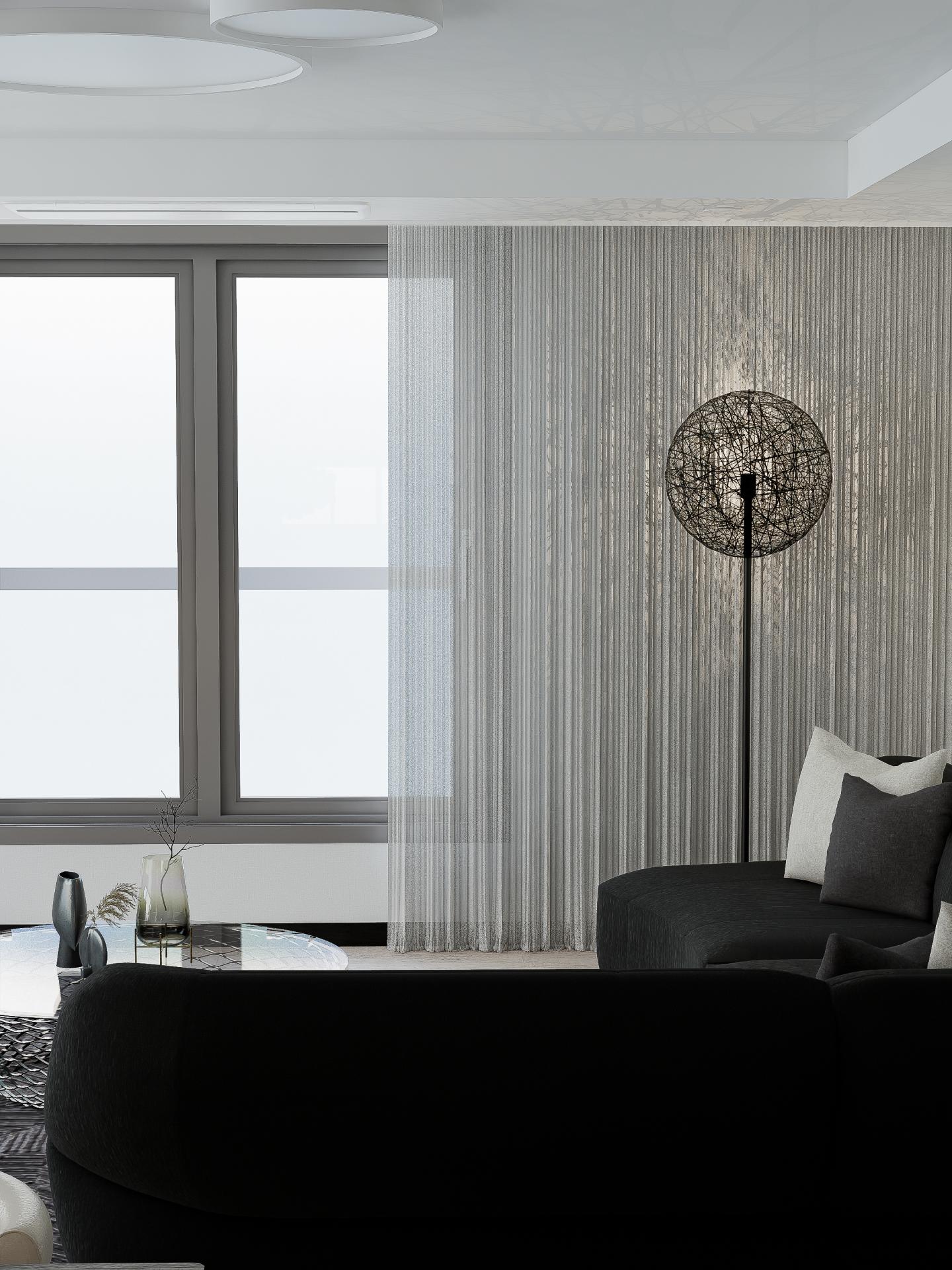 소파를 양쪽 창문이 잘 보이는 위치에 배치하여 탁 트인 개방감을 느끼실 수 있도록 제안해 드렸습니다.