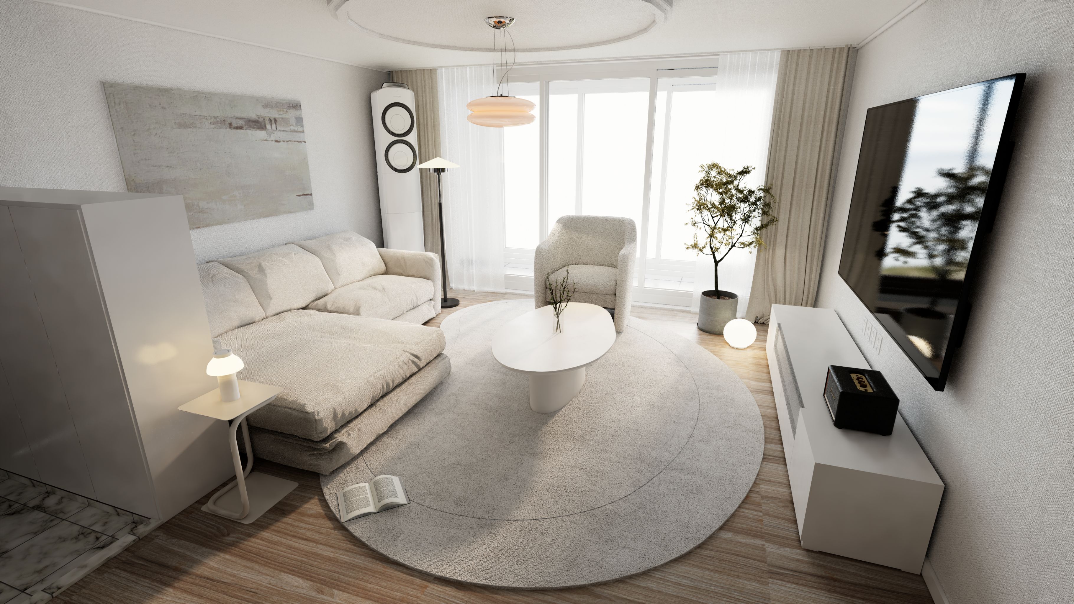 차분하고 고요한 모던 거실 공간