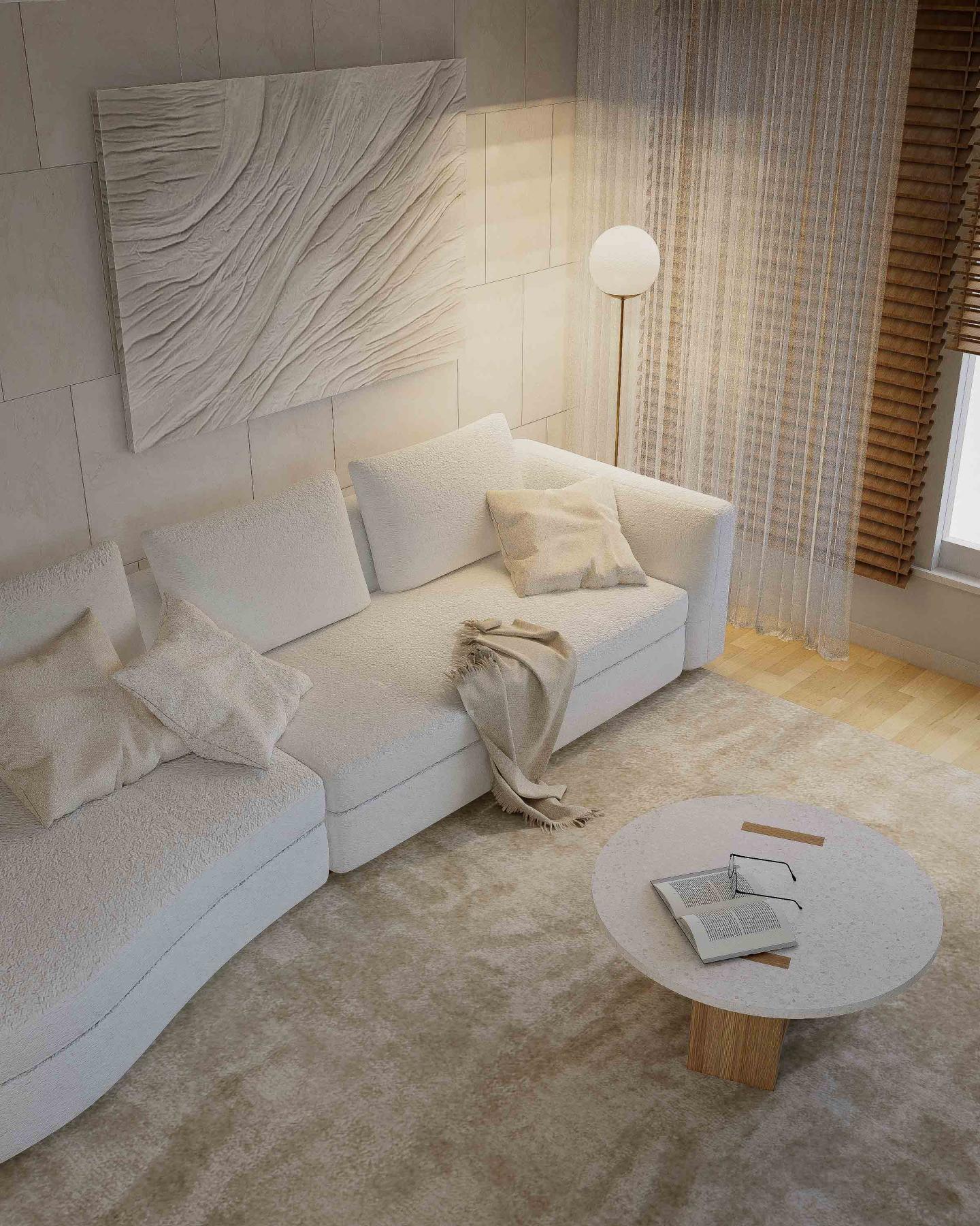 ‘화이트와 우드로 완성된 편안한 공간’
