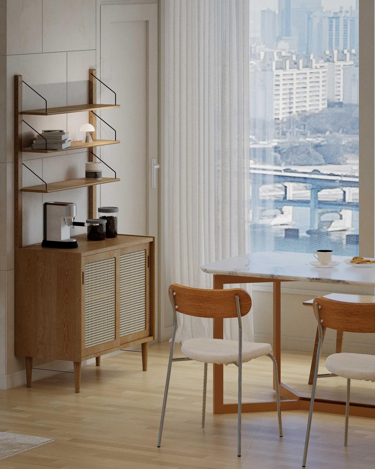 아래쪽이 개방된 디자인으로 거실이 더 넓어 보이는 효과를 가져올 수 있습니다.