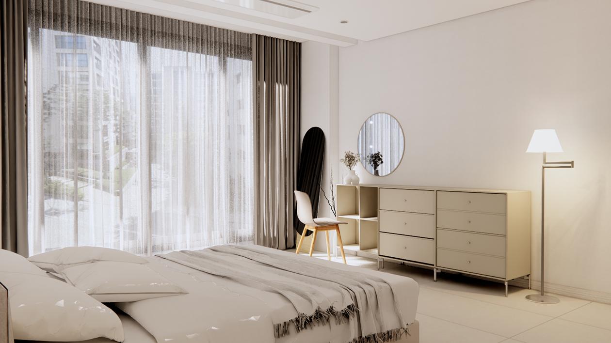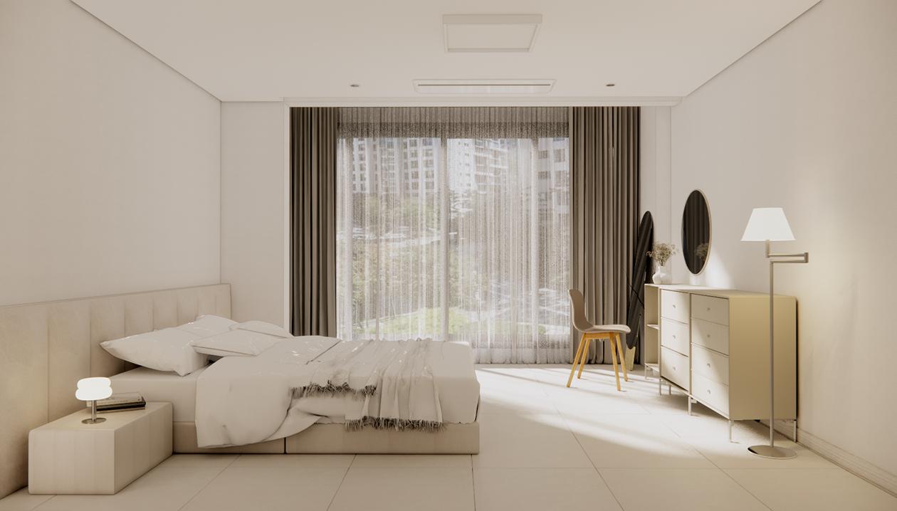 화이트로 완성한 휴식—여백이 주는 침실의 여유