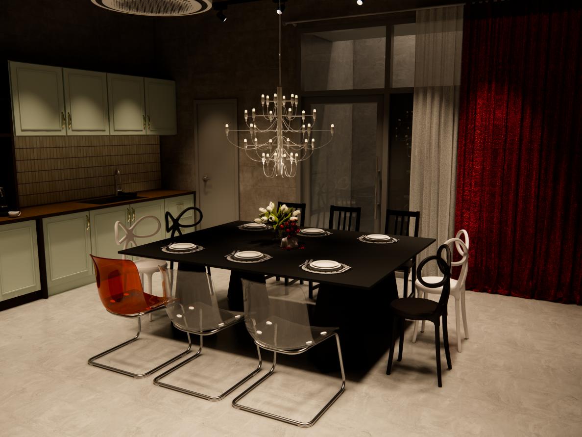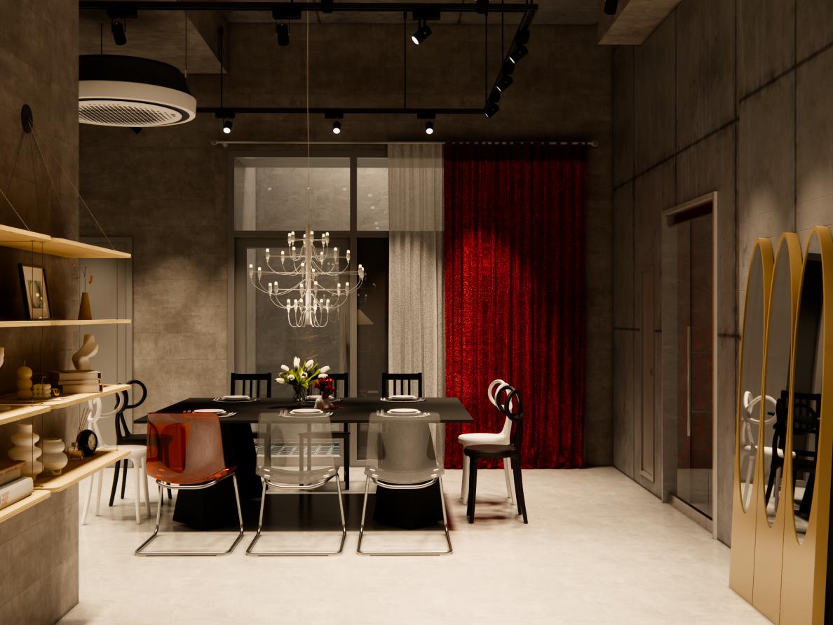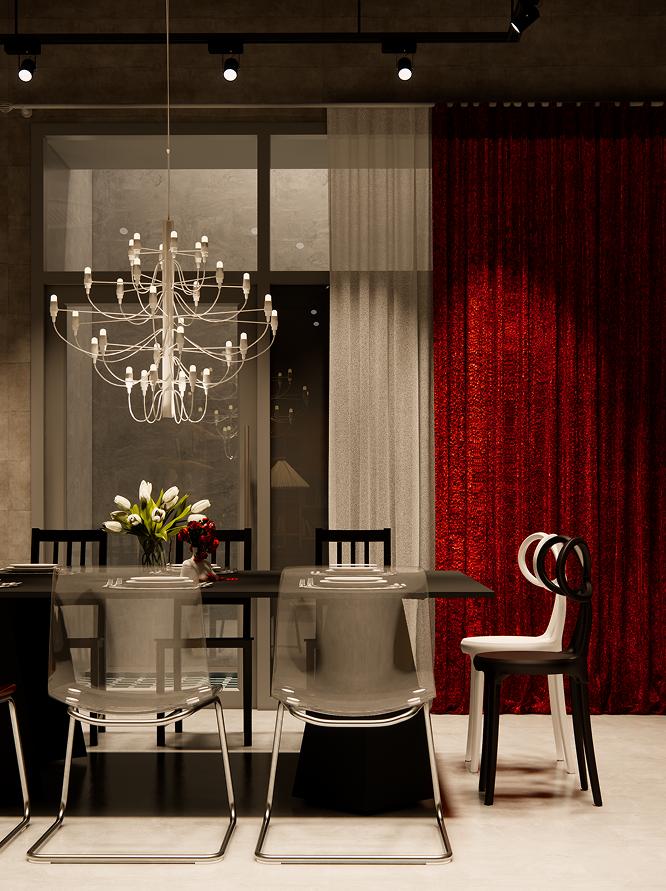 레드 커튼이 바꾼 다이닝 무드