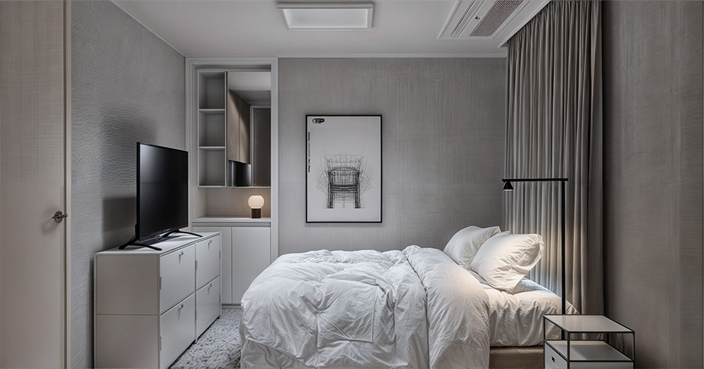 미니멀하고 넉넉한 수납공간이 있는 침실