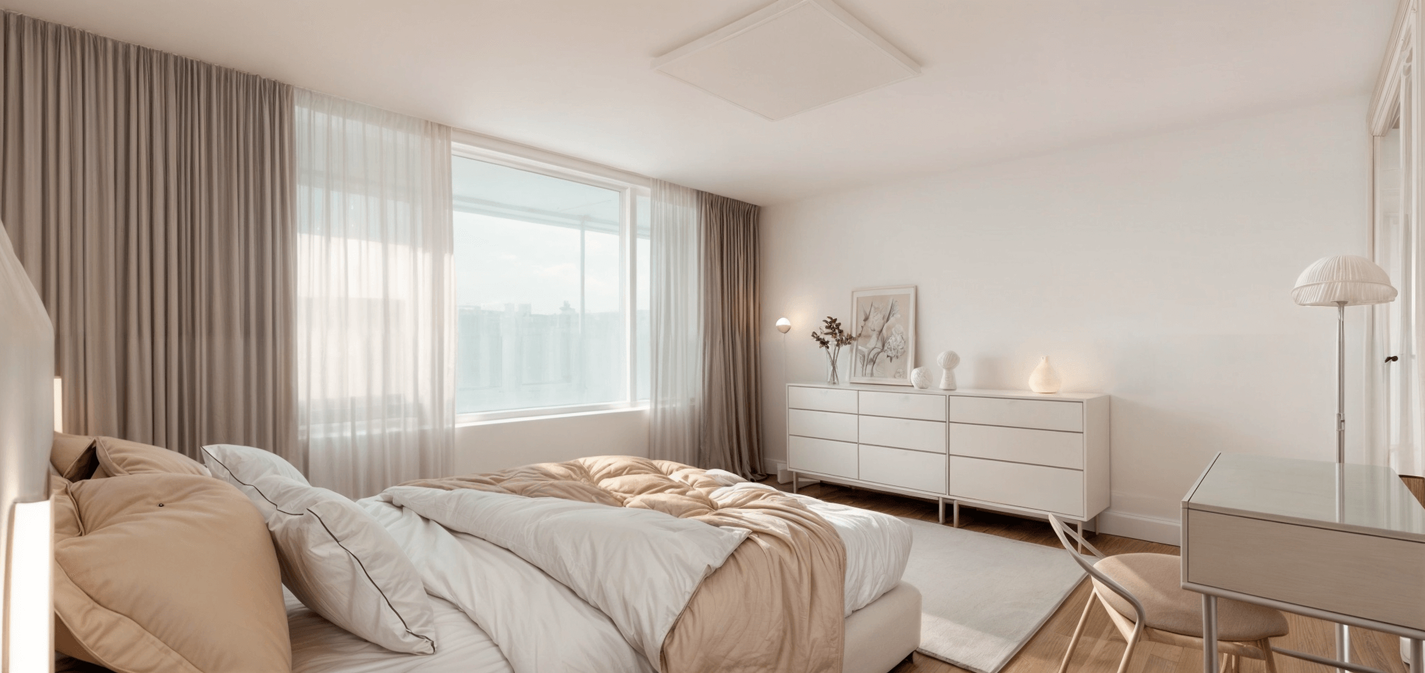 고급스러움이 느껴지는 화이트 톤의 침실