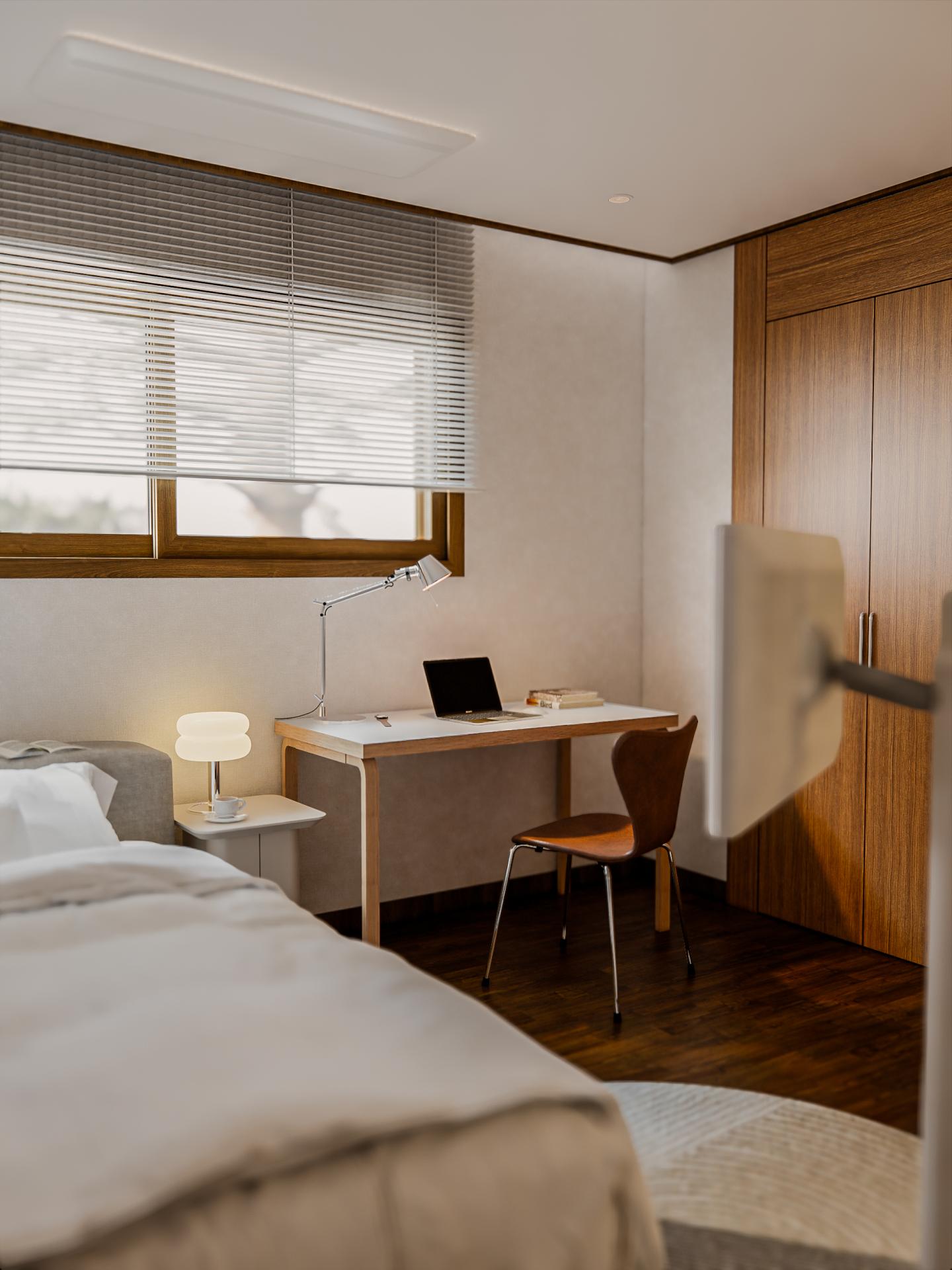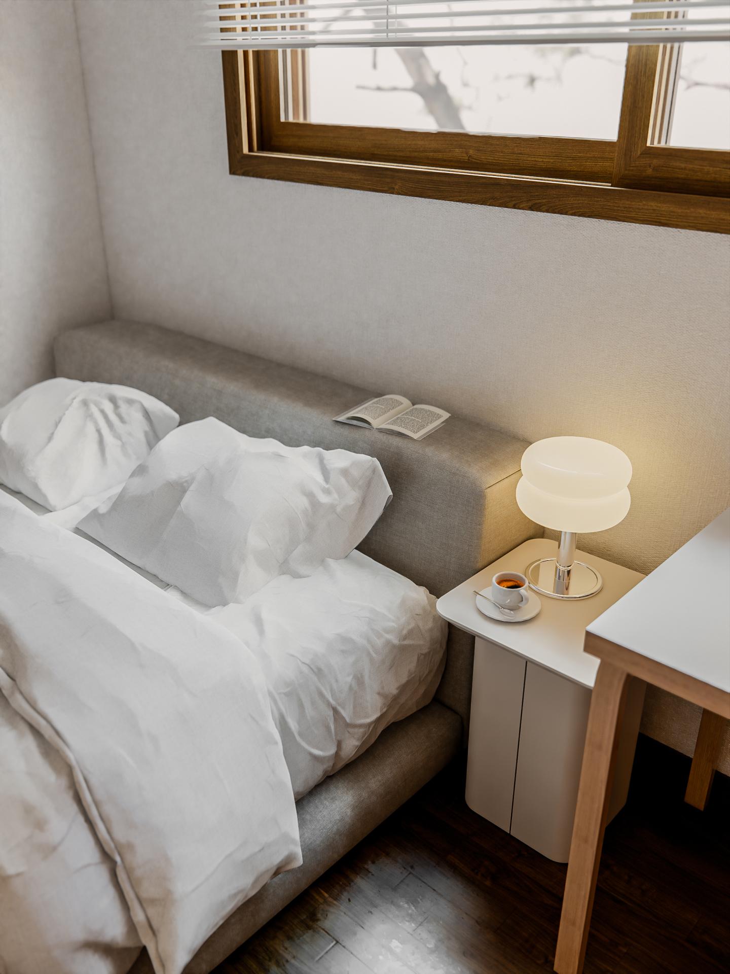 쌓인 하루를 녹여주는 따뜻한 게스트룸 공간