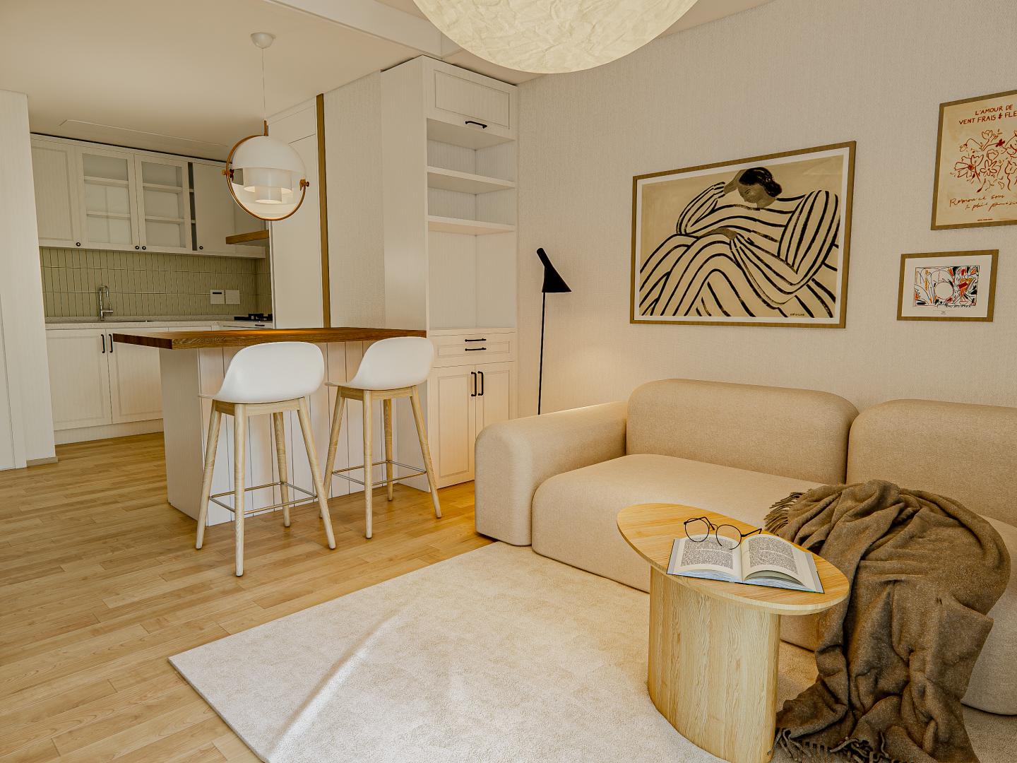 감각적인 아트,곡선 소파가 어우러진 아늑한 거실