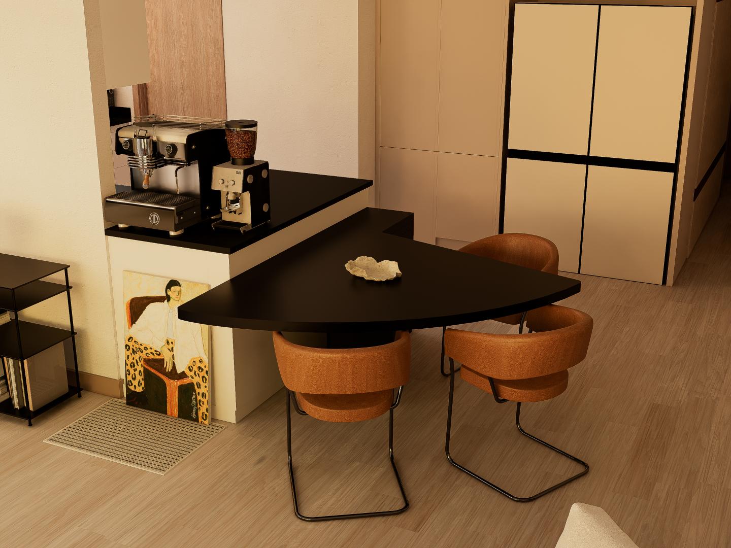 유니크한 쉐입의 테이블과 모던 하면서도 곡선의 우려함이 가미 제안해 드렸습니다.