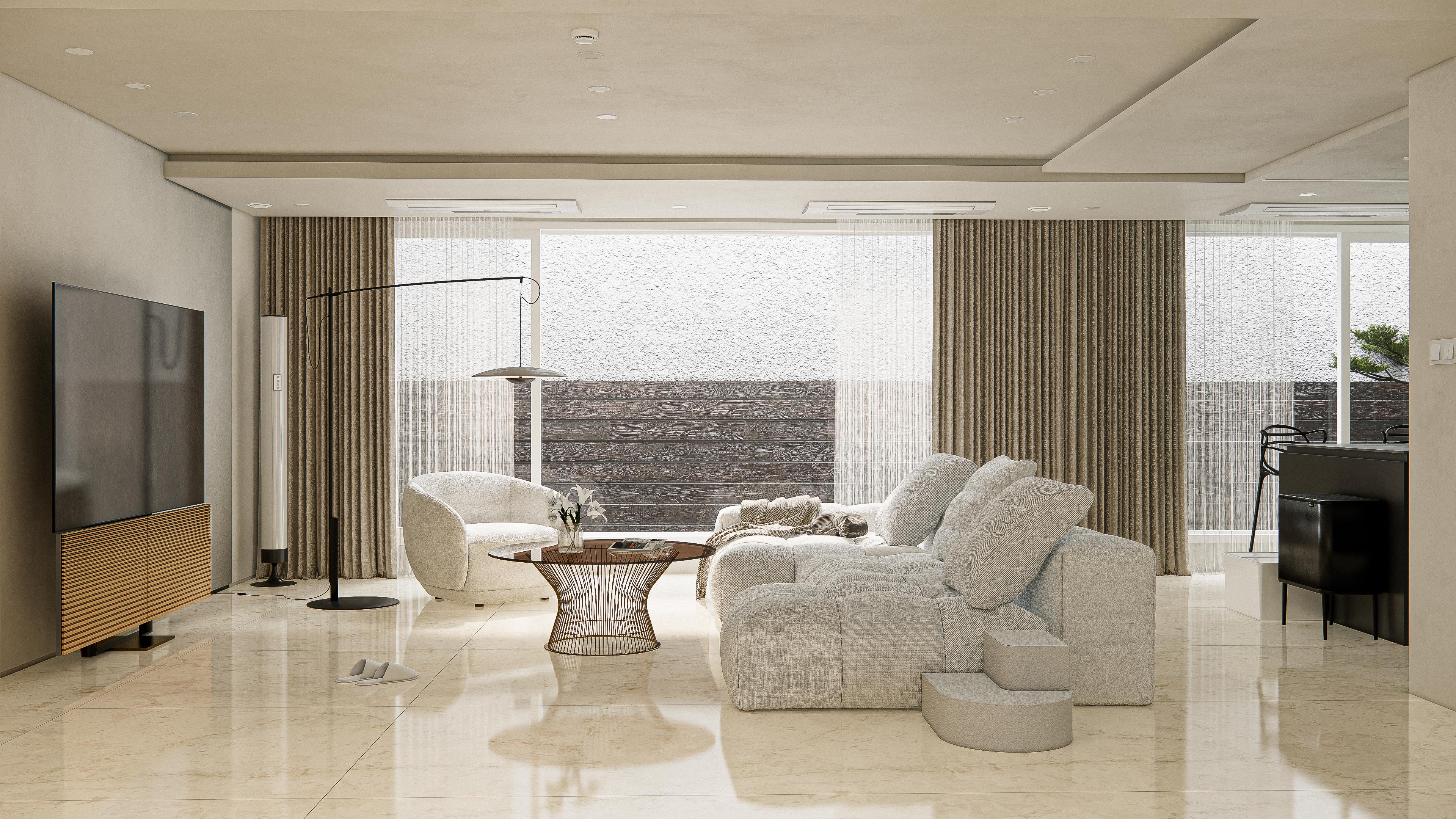 청담 파라곤 76평 거실 내추럴 모던 인테리어
