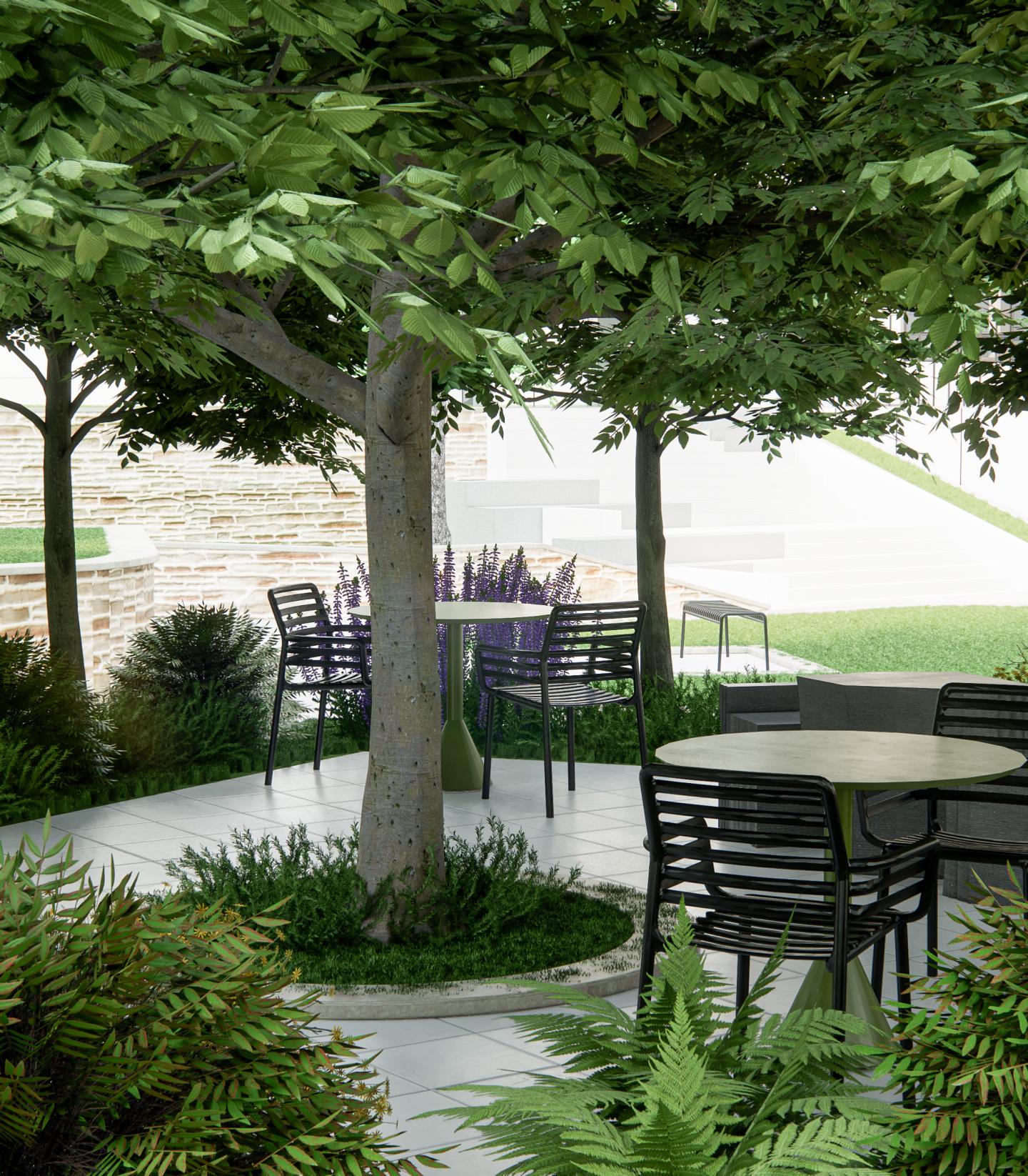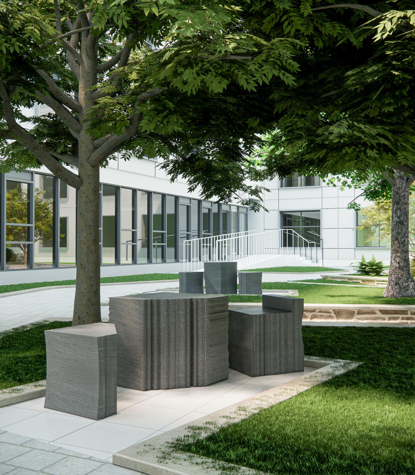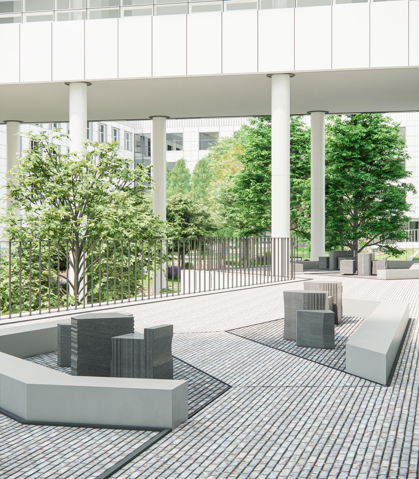 석재의 무게감, 초록의 유연함