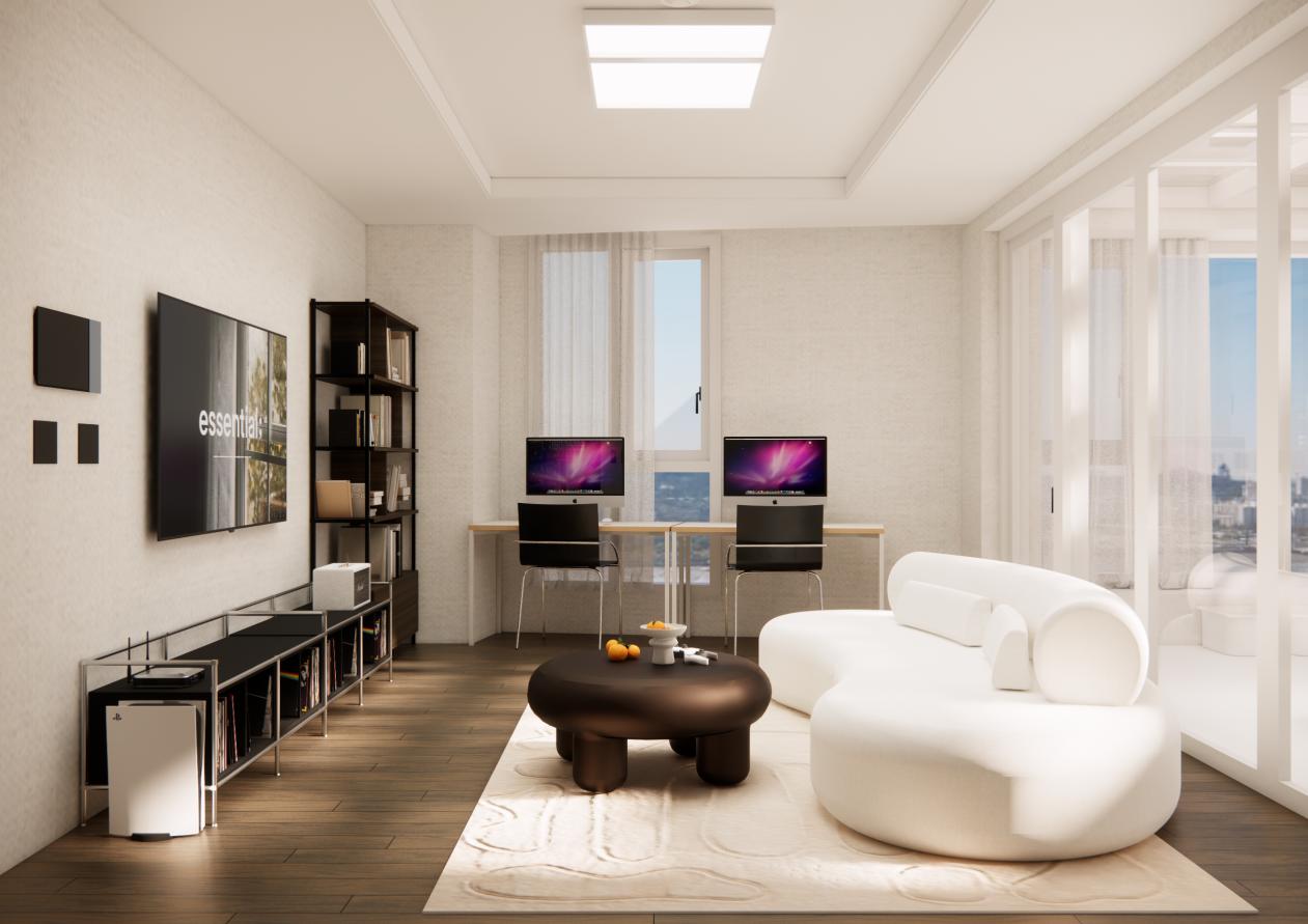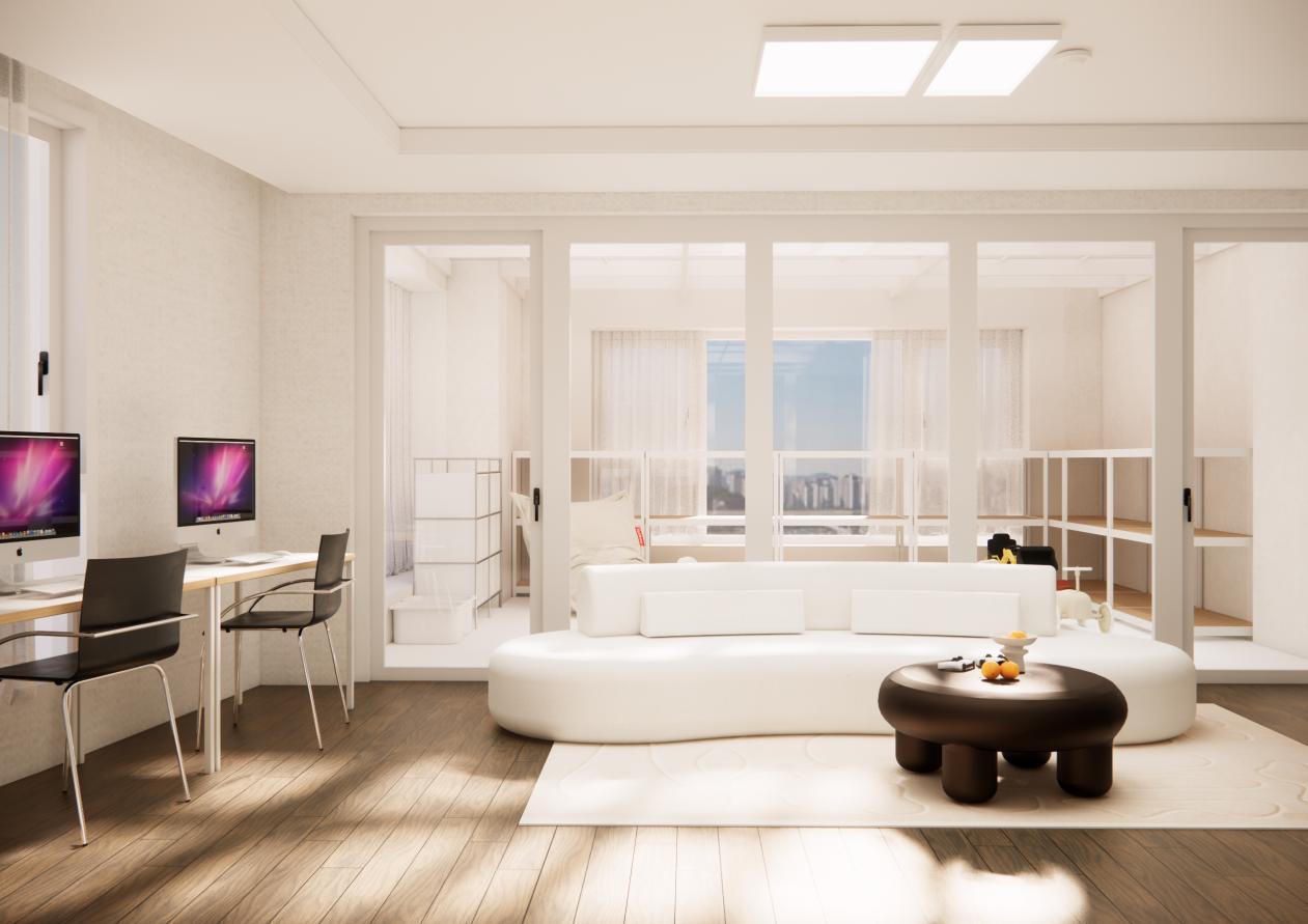 테라스와 연결된 개방형 라운지 공간