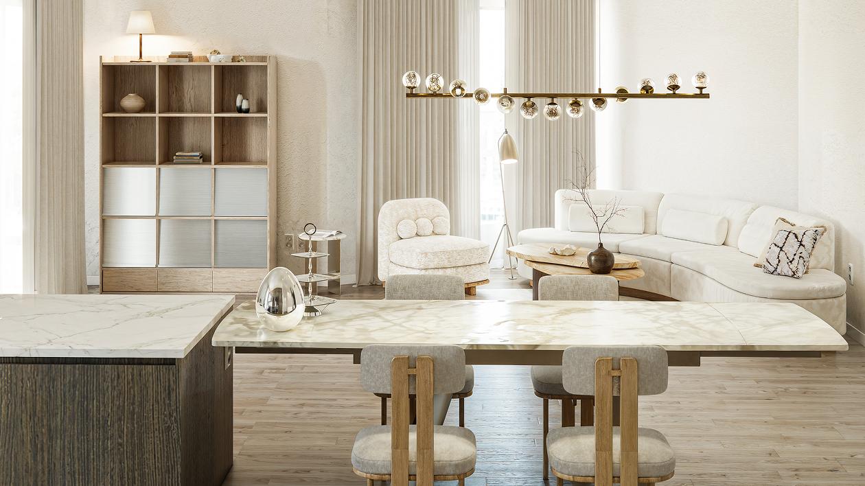 빛과 소재로 완성한 품격—우아함이 흐르는 다이닝